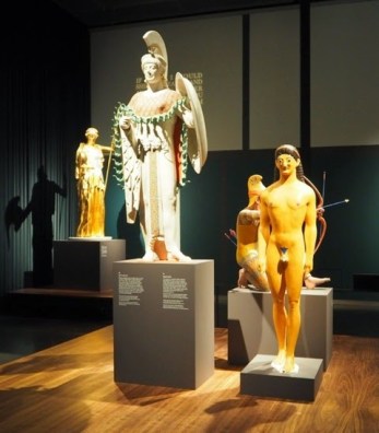 Horrors. Yes, yes, intellectually I know there is plenty of evidence to prove that the ancient Greeks painted and polychromed their statuary and sometimes covered them in gold and ivory but oh my, why is seeing it always such a shock? Would it really have been that gaudy? The replicas here look like something out of Caesar’s Palace in Vegas.
