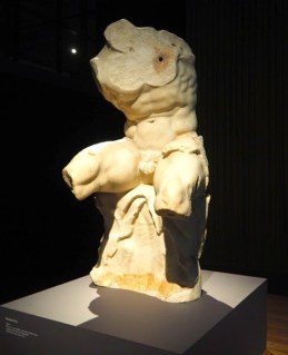 The Belvedere Torso, a wonderful coup of a loan from the Vatican Museum for this exhibition, ends the show with a bang. This is the Roman marble, copy of a Greek original, which famously inspired Michelangelo who modelled his Adam for the Sistine Chapel frescoes on the huge headless, armless figure.