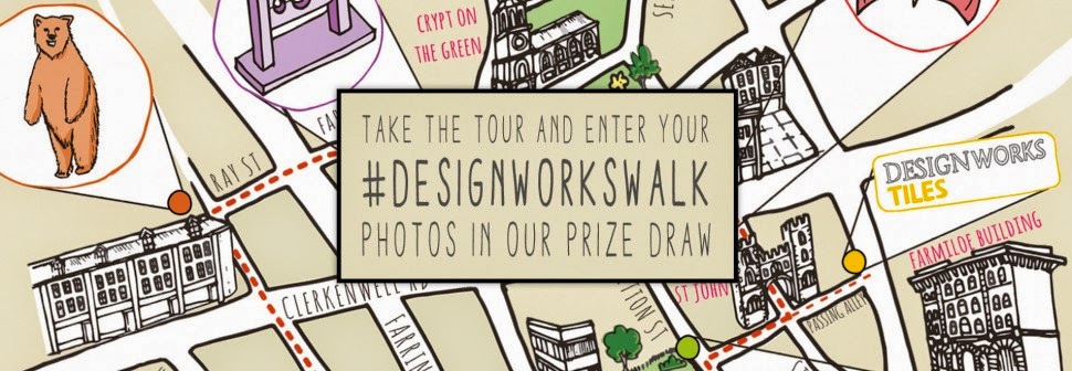 - Designworks Tiles has created a specially curated design walk of the Clerkenwell area. Tours will be led by a local historian, featuring five large scale installations which delve into little known facts about the area. From man-eating bears to a giant diamond and Shakespeare in 3D, all have been amazingly created using tiles.