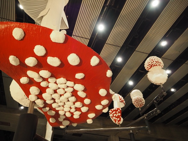 The exhibition is called Decision and there is a decision to be made even before you enter. Do you take entrance Door A or entrance Door B? I took Door B and was plunged into darkness, going through a long twisting and turning route along a metal tunnel, the floor rising and falling and clanking beneath my feet. This was a disorientating experience, doubtless intentionally so, and after walking into a couple of walls in the dark I was very grateful to emerge into the light of a gallery holding Flying Mushrooms, a huge kinetic mobile of giant red and white fly agaric mushrooms. You can give the work a push to set it in motion – if you decide to, that is. A new work by Höller, Two Roaming Beds (Grey), which is comprised of two robotic beds on wheels, independently roams the gallery in a kind of robotic dance. (The beds are bookable for the night throughout the period of the exhibition, but more on that in a post coming up tomorrow)