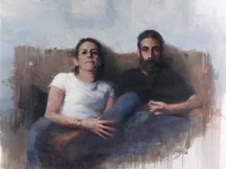 The judges were impressed by the highly charged and unsettling portrait in which the artist chose to depict his sitters as though they were facing tragedy in an echo of the Biblical story of Jephthah. In this story an Israelite judge vowed on entering battle that should he win, he will sacrifice the first thing that greets him upon his home-coming, believing it to be a dog. However, on his return, it is his daughter who rushes out in welcome. Realising the tragic mistake he has made, he upholds his vow and sacrifices his child.
