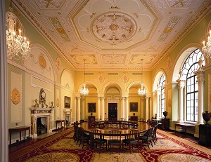 The Bank was Soane’s main pre-occupation for 45 years, a situation he described as ‘the pride and boast of my life’. His structure remained, more or less untouched, until it was demolished in favour of Sir Herbert Baker’s larger building, which rises seven storeys above ground (and reaches three below), and was built between 1925 and 1939. The windowless ‘curtain’ wall on Threadneedle Street is the only part of Soane’s original building standing today, although several lattice-backed chairs, made to his design, can be found in the Parlours and can be seen on the tours.
